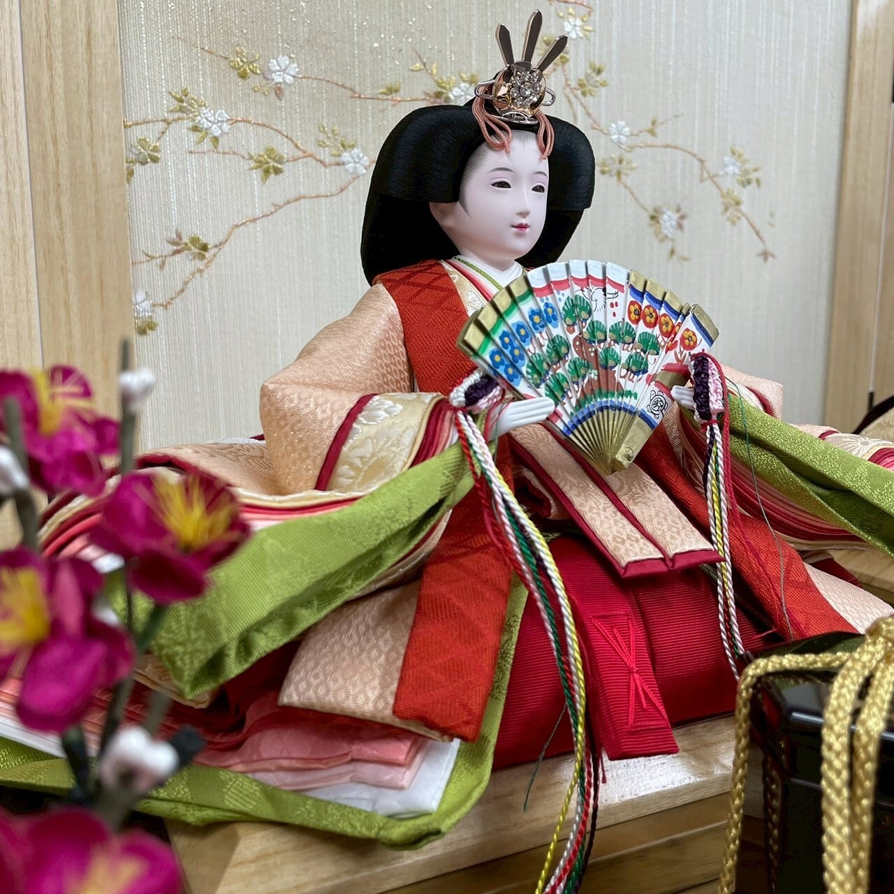 昔からの伝統を重んじ向かって右に男雛、左に女雛の配置になっています。
