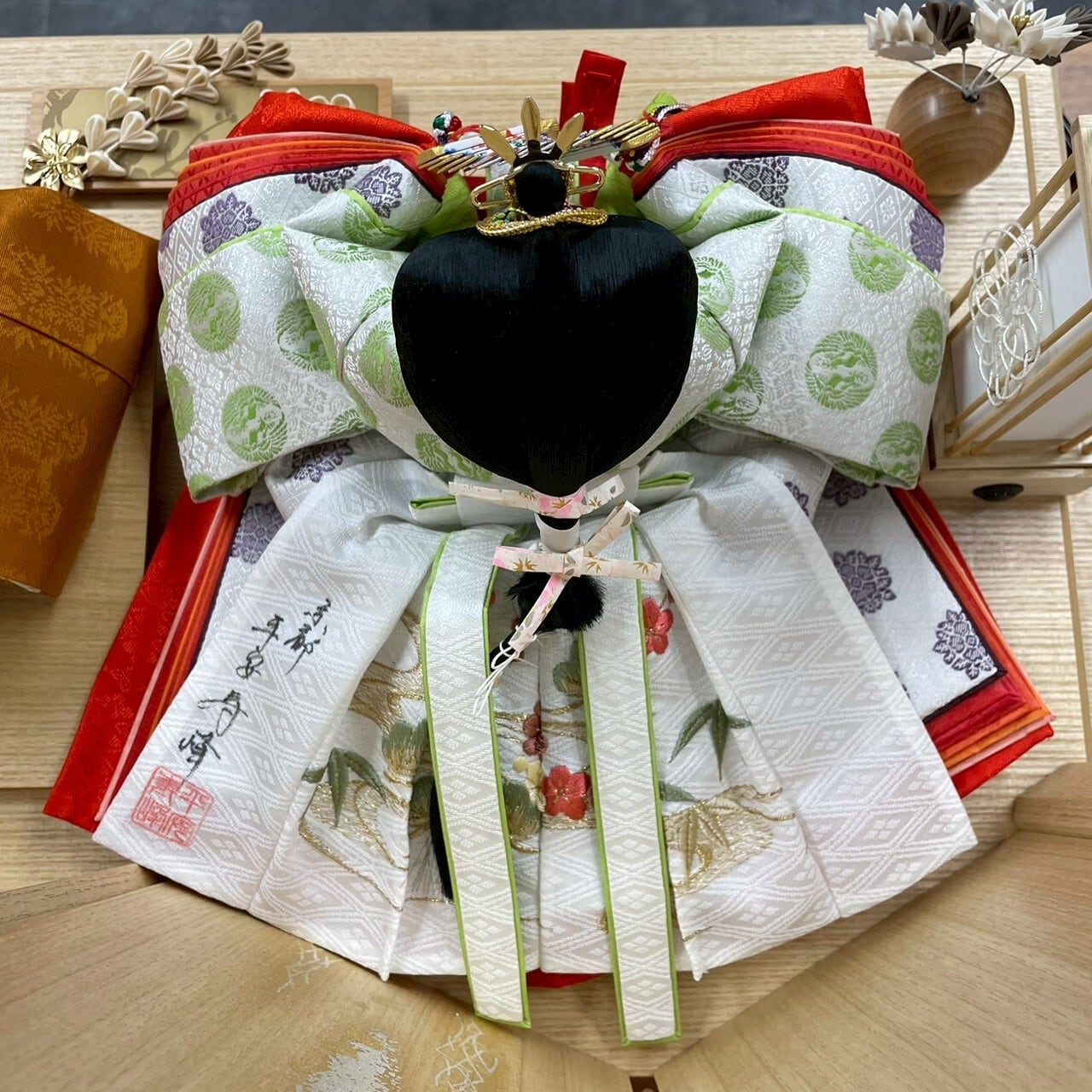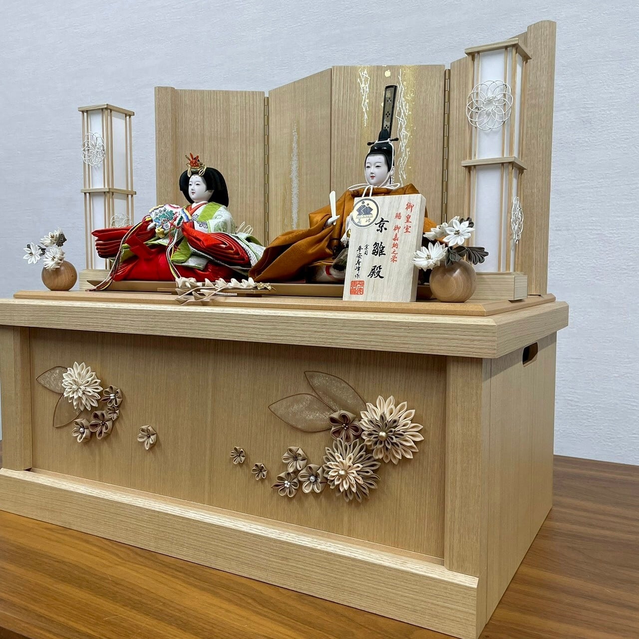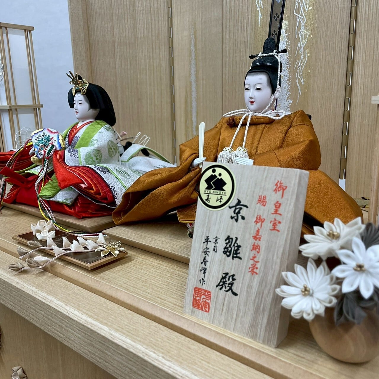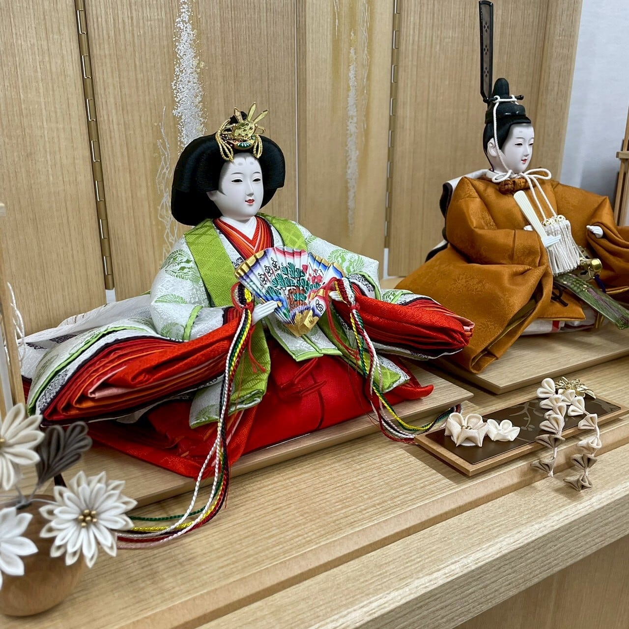 昔からの伝統を重んじ向かって右に男雛、左に女雛の配置になっています。