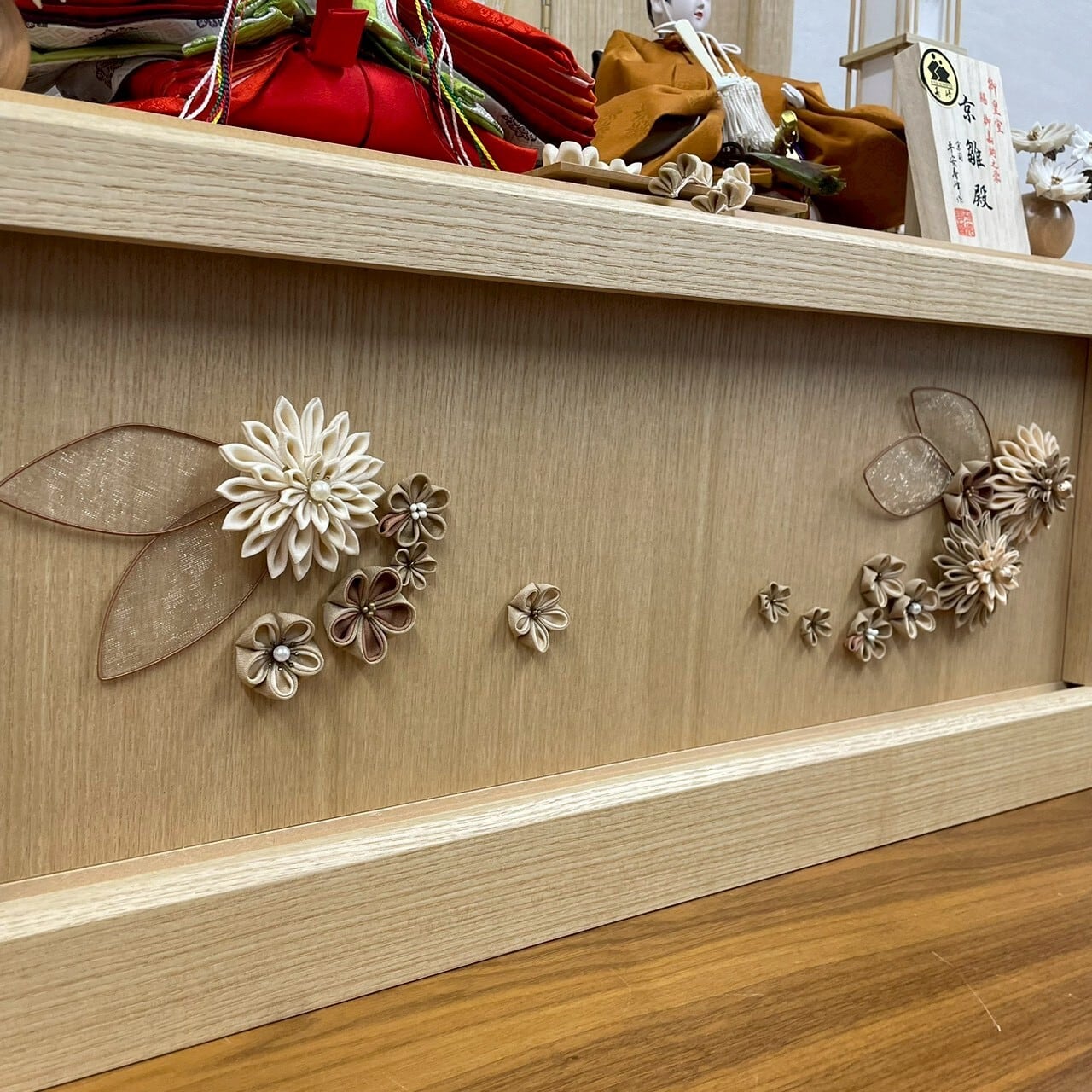 モダンな飾台に合わせ、和と洋のバランスが取れています。