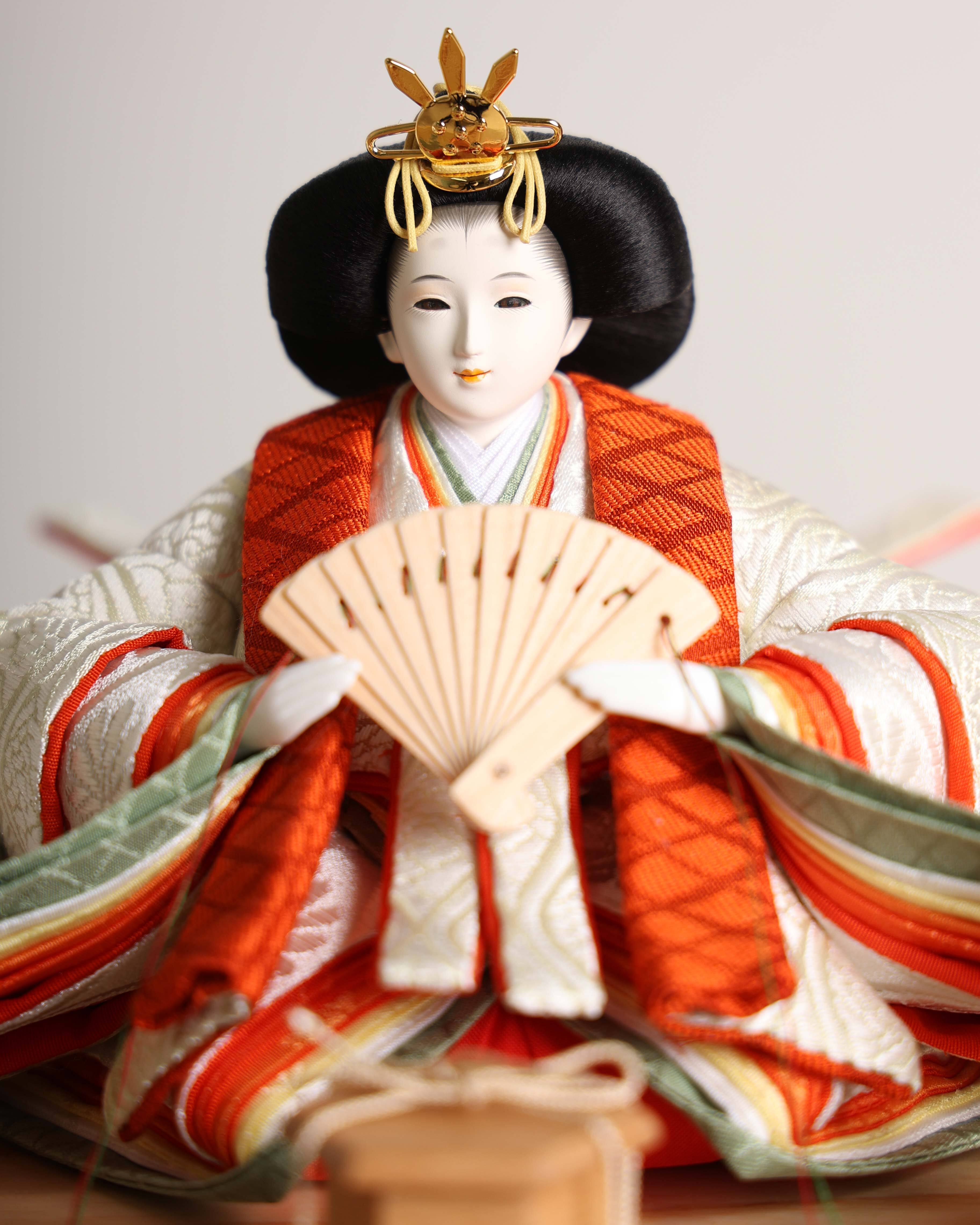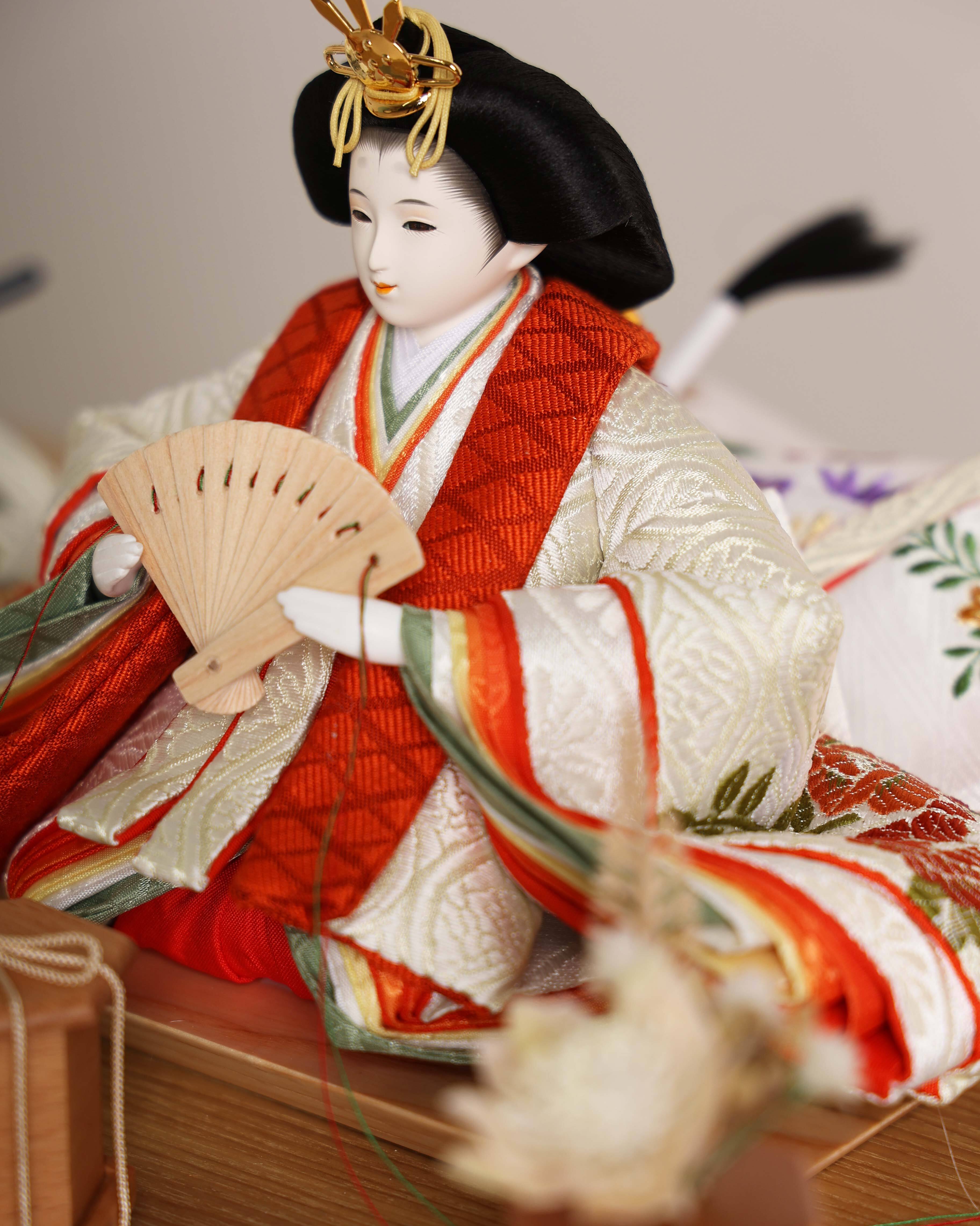 華やかな朱赤と上品な白を基調にした、伝統美と明るさが調和する親王飾りです。