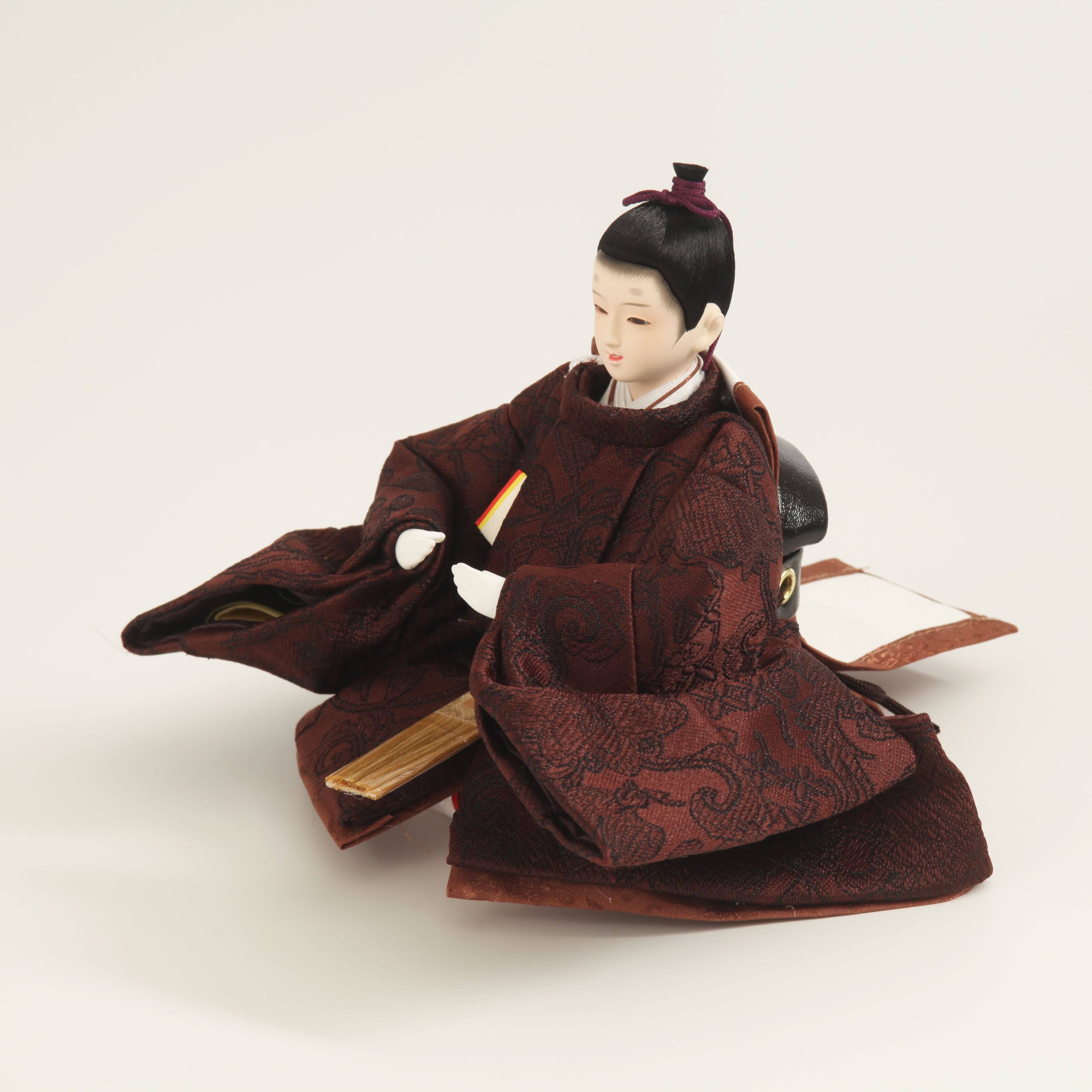 深みのあるえんじ色を基調としたお殿様と、淡いピンクから濃いめの色合いまで丁寧に重ねられたお雛様は、品よく落ち着きと高級感を併せ持つ大人びた配色。