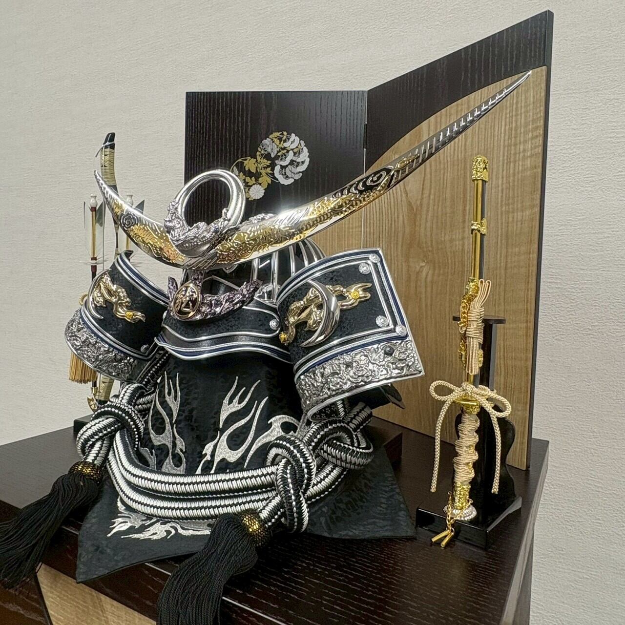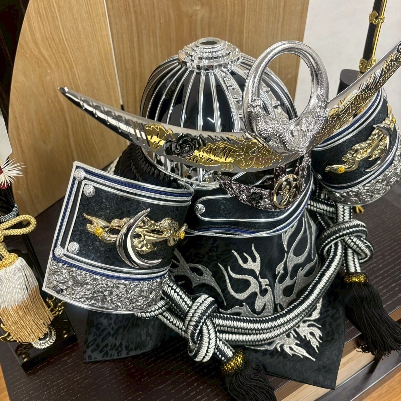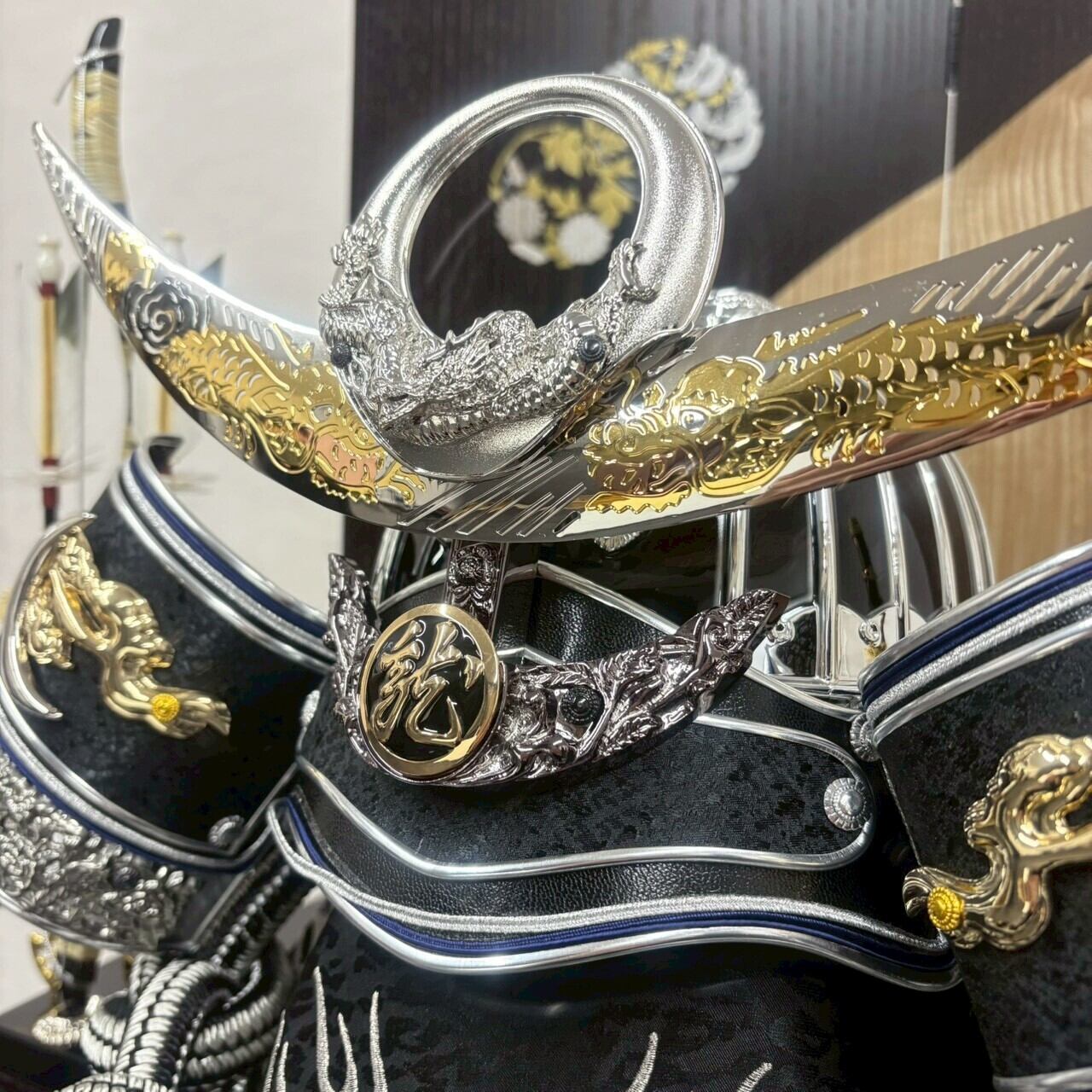 上杉謙信は戦国最強の武将の一人として「軍神」と呼ばれました。上杉謙信の兜には、「正義」「強さ」「誠実さ」などの意味が込められています。兜の前立ては、上杉謙信が信仰していた「妙見信仰(みょうけんしんこう)」の教えである「太陽と月」のデザインをモチーフにしています。義理堅い人柄にあやかり「義理堅い人になるように」「英知を備えた人になるように」と願いが込められています。