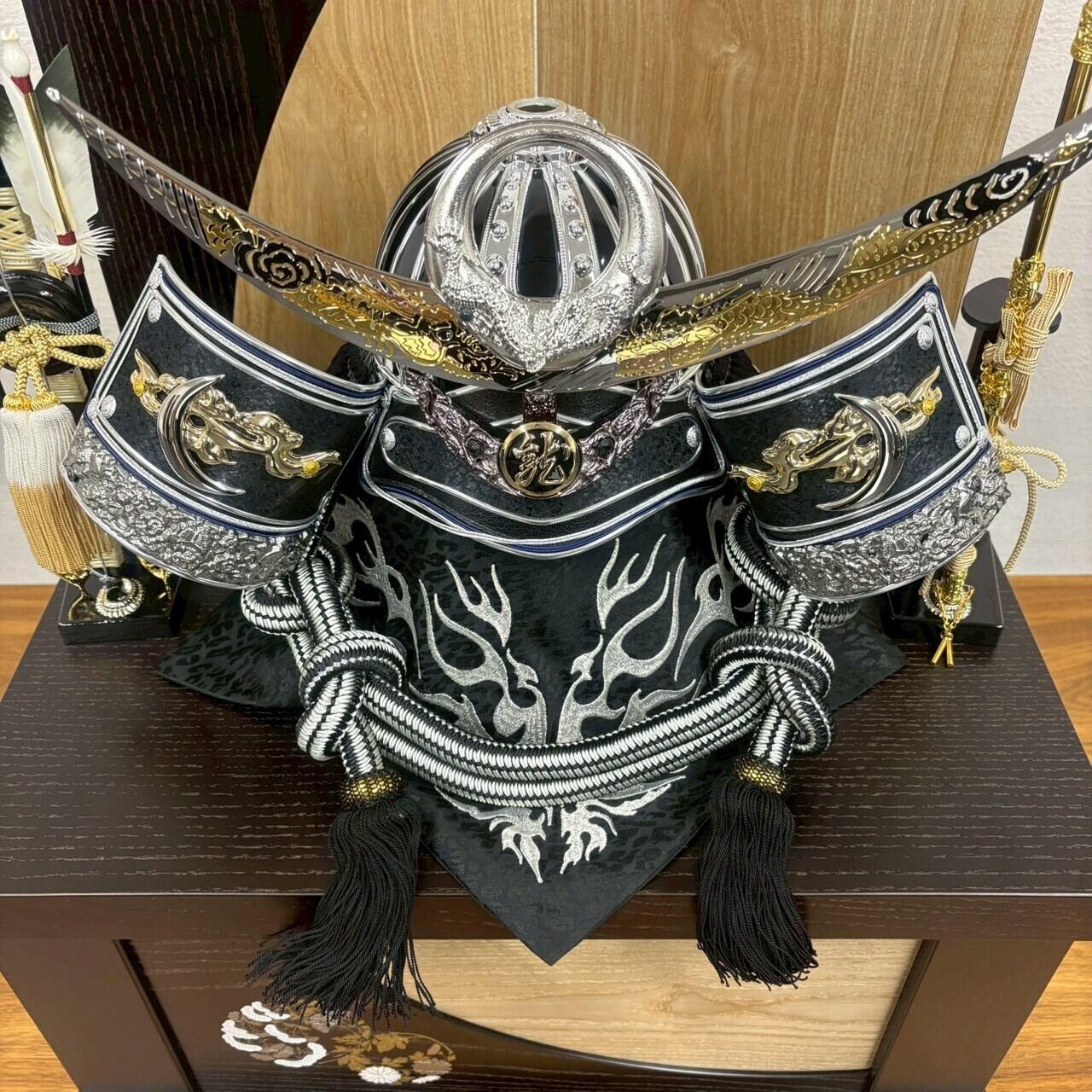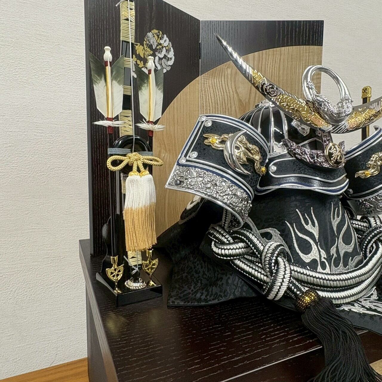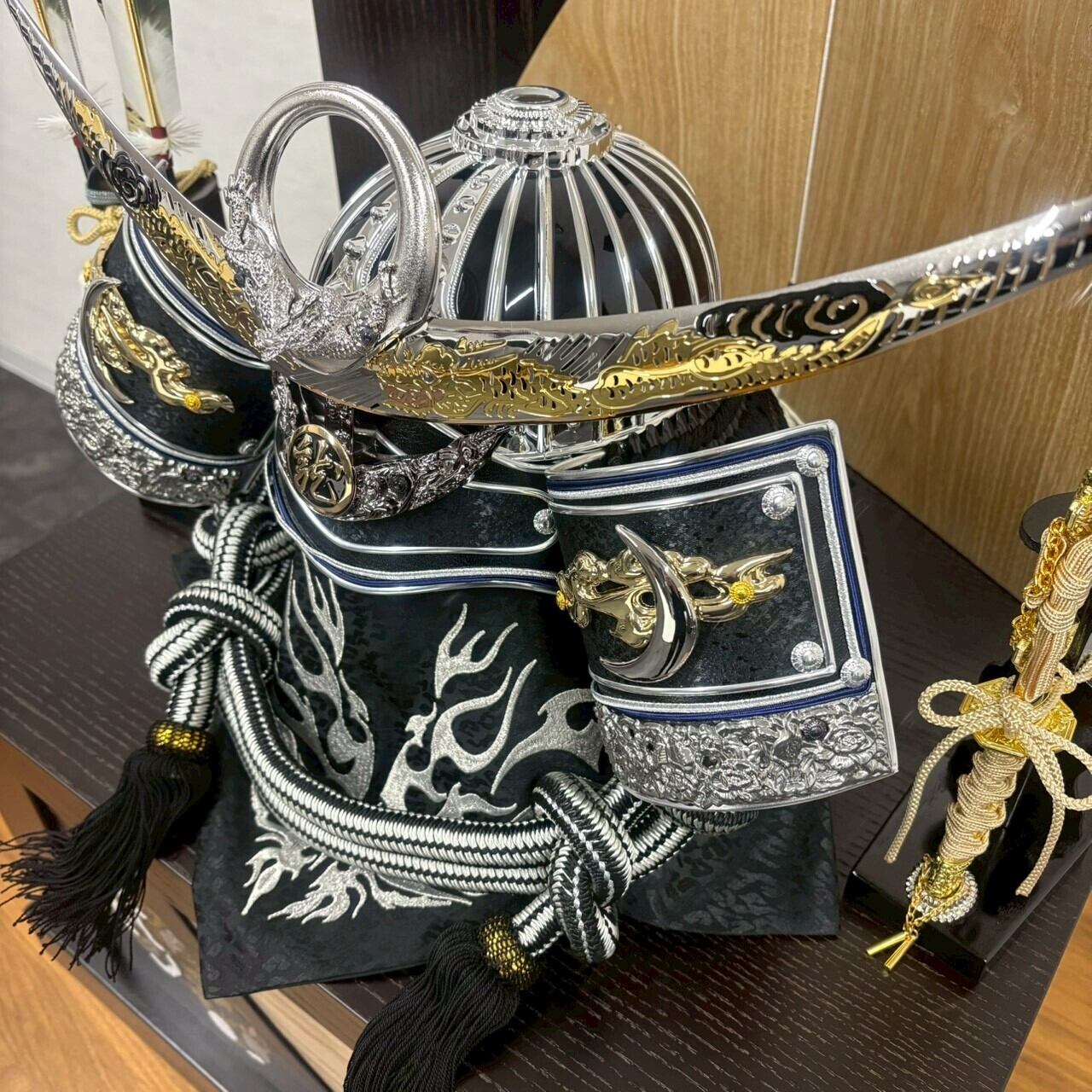 上杉謙信は戦国最強の武将の一人として「軍神」と呼ばれました。上杉謙信の兜には、「正義」「強さ」「誠実さ」などの意味が込められています。兜の前立ては、上杉謙信が信仰していた「妙見信仰(みょうけんしんこう)」の教えである「太陽と月」のデザインをモチーフにしています。義理堅い人柄にあやかり「義理堅い人になるように」「英知を備えた人になるように」と願いが込められています。