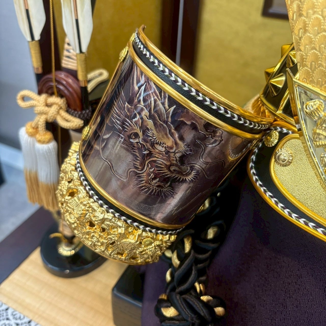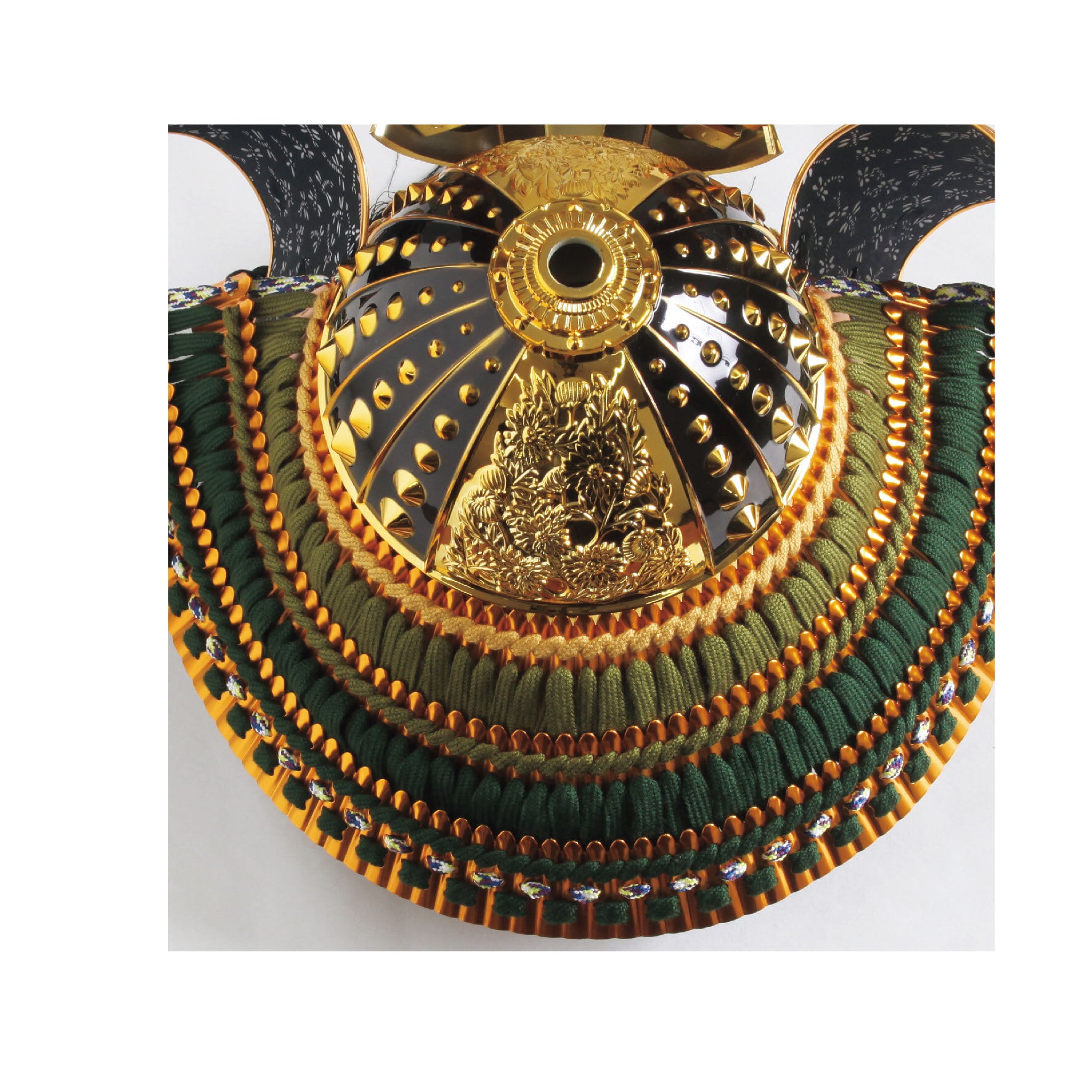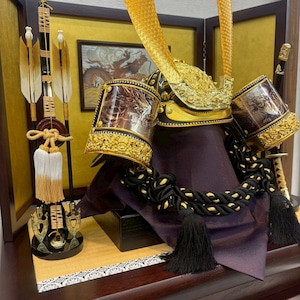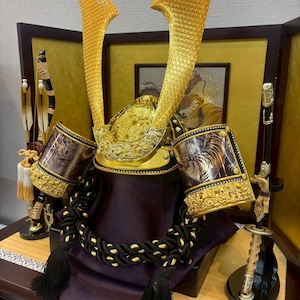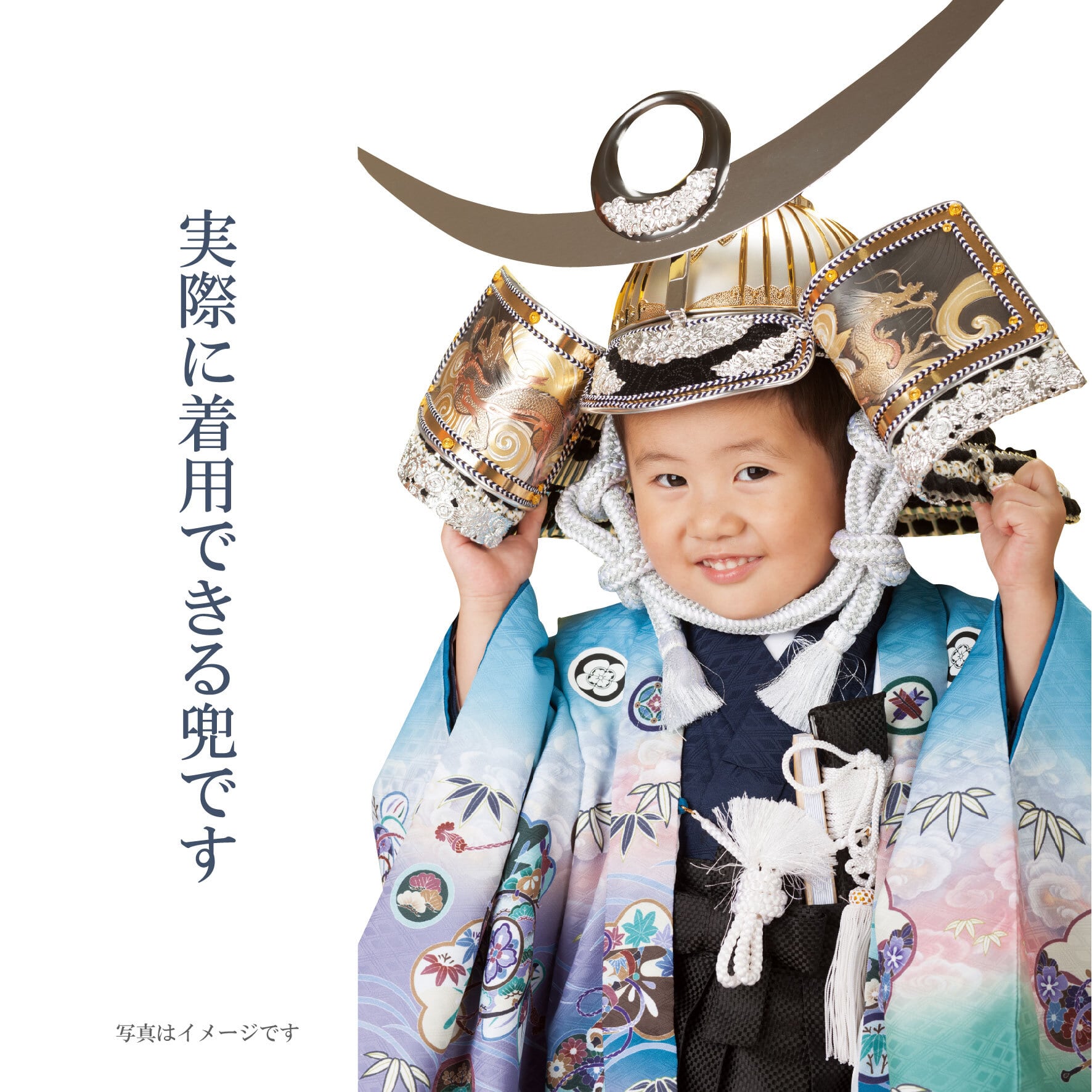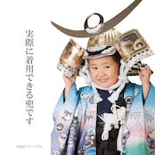 3~5歳のお子さまが実際にかぶることが出来る兜です。豪華に飾り着用出来るため節句の祝い方が増して楽しめます。