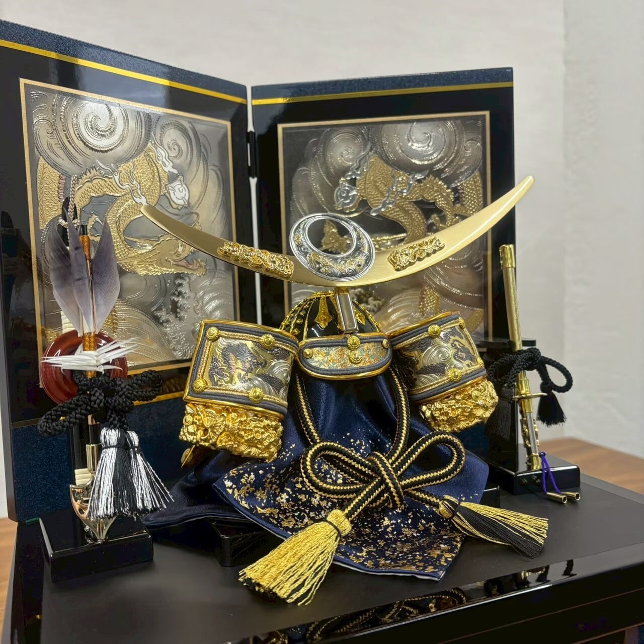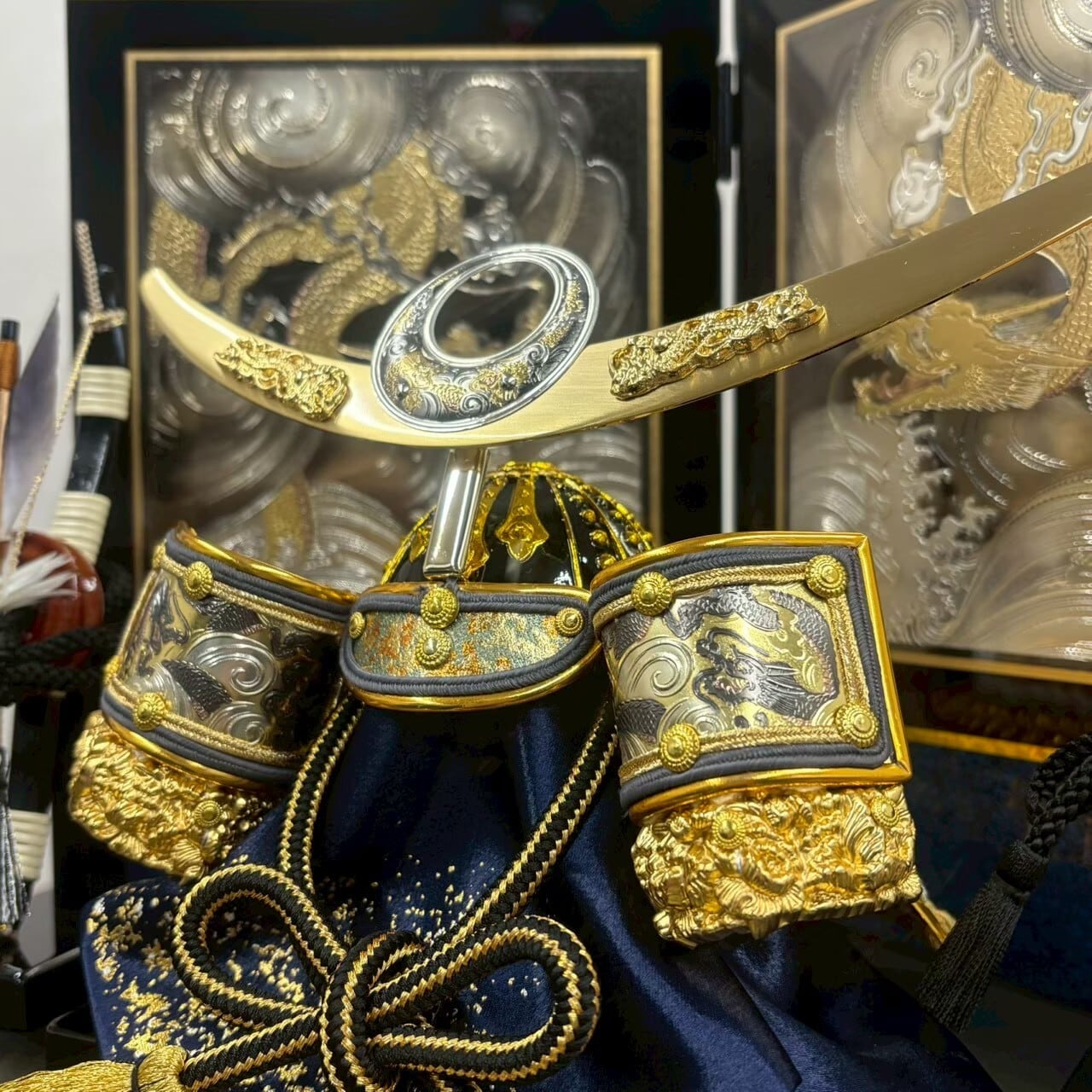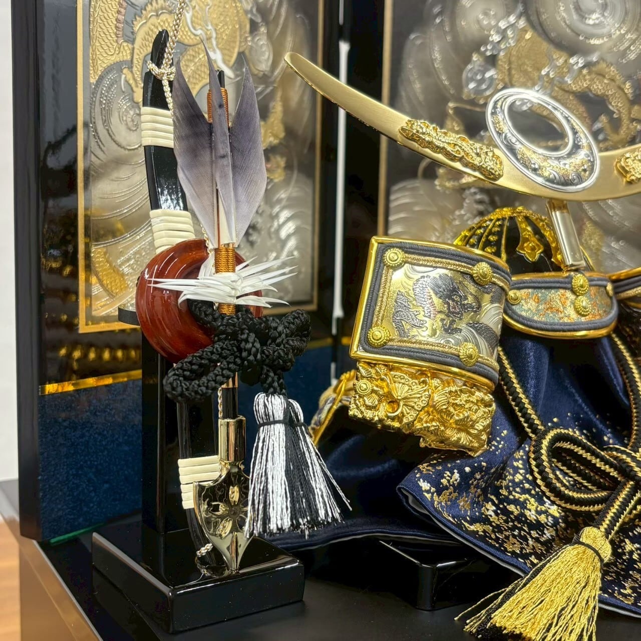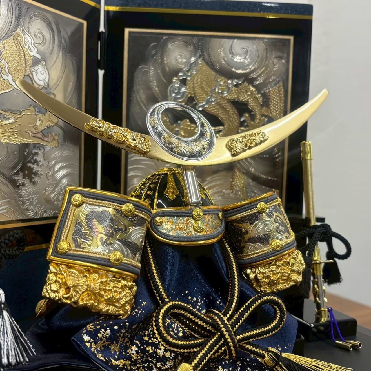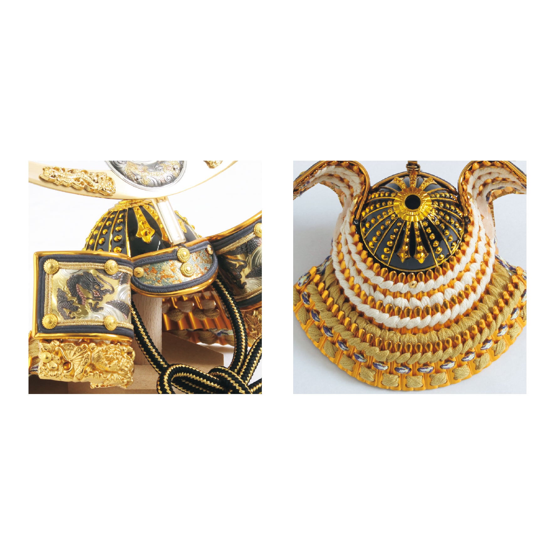 上杉謙信は戦国最強の武将の一人として「軍神」と呼ばれました。上杉謙信の兜には、「正義」「強さ」「誠実さ」などの意味が込められています。兜の前立ては、上杉謙信が信仰していた「妙見信仰(みょうけんしんこう)」の教えである「太陽と月」のデザインをモチーフにしています。義理堅い人柄にあやかり「義理堅い人になるように」「英知を備えた人になるように」と願いが込められています。