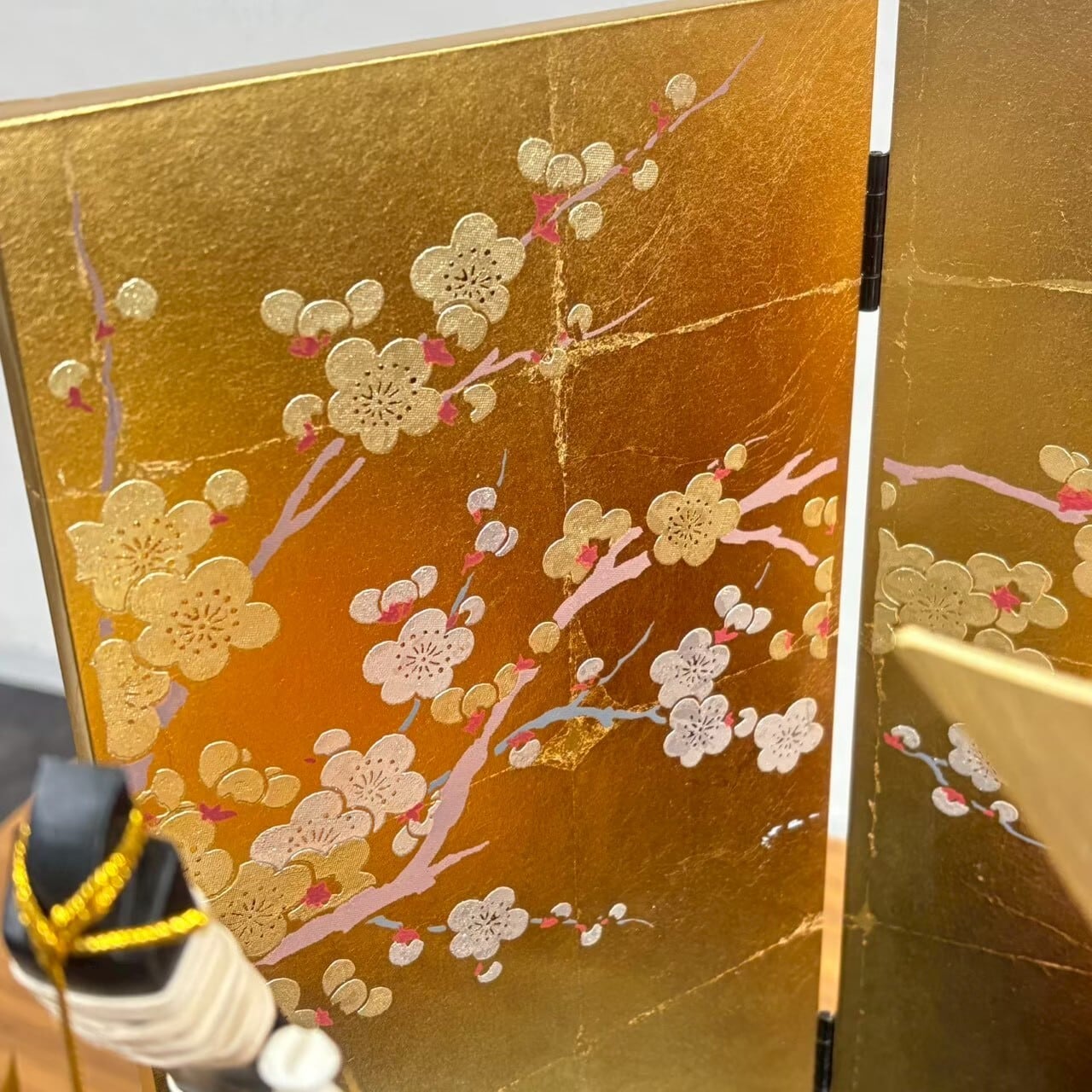 純金鍍金された吹き返しや裾の竹雀の飾り金物をはじめ、細部に至るまで匠の技が光ります。