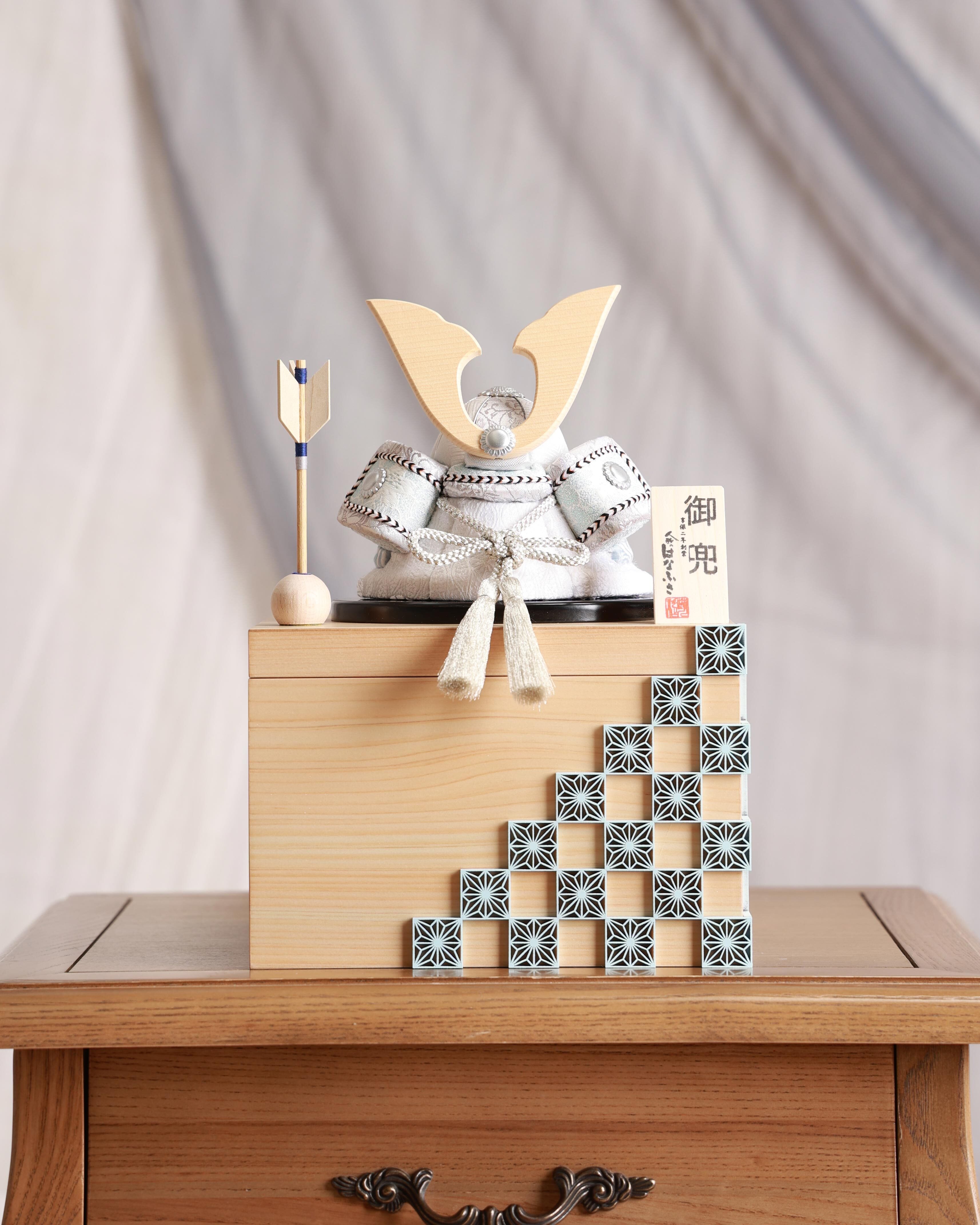 飾り台と収納箱を兼ねた実用的なつくりで、飾りやすく片付けもすっきり。お子さまの健やかな成長を願う、上質で飽きのこない五月人形です。