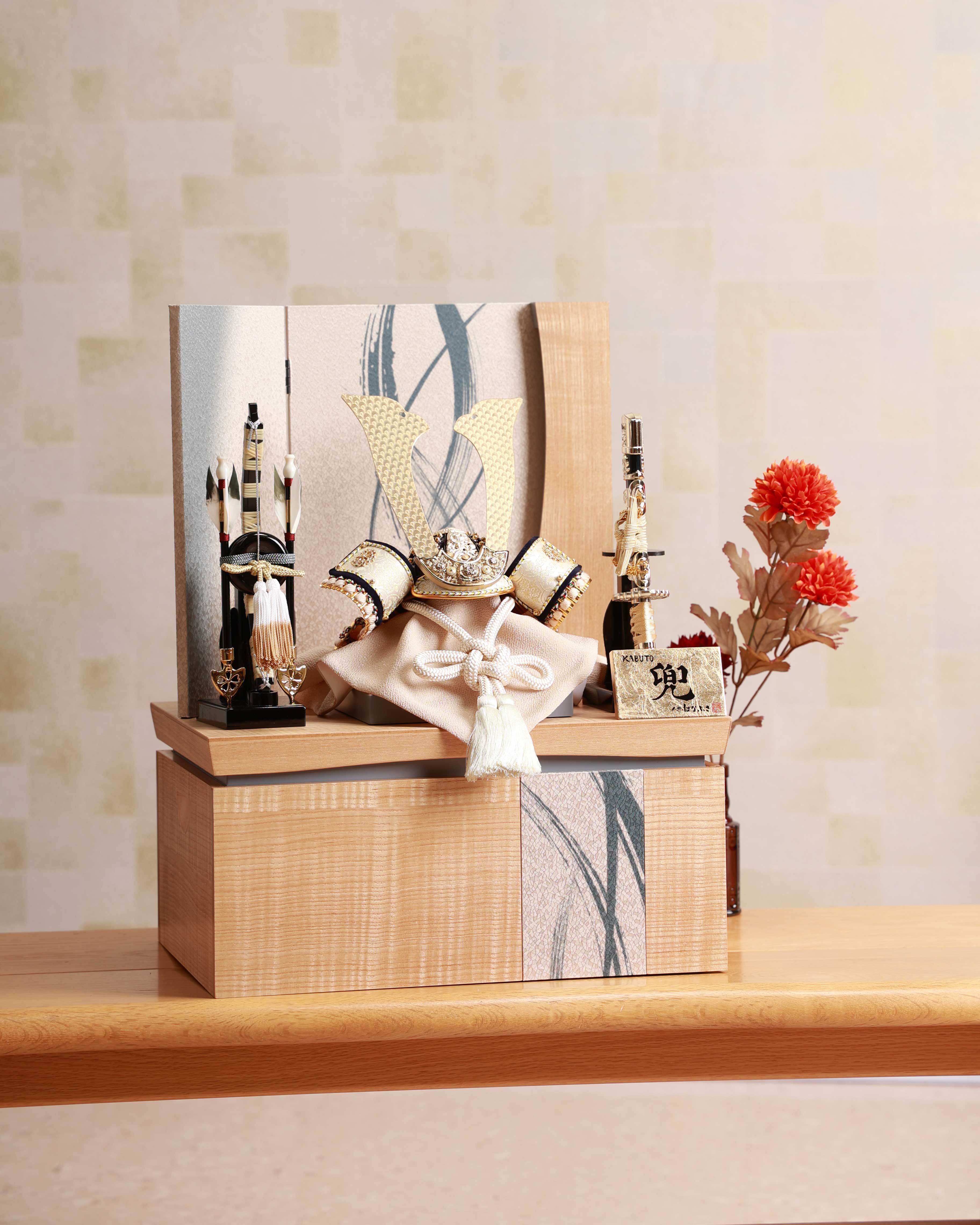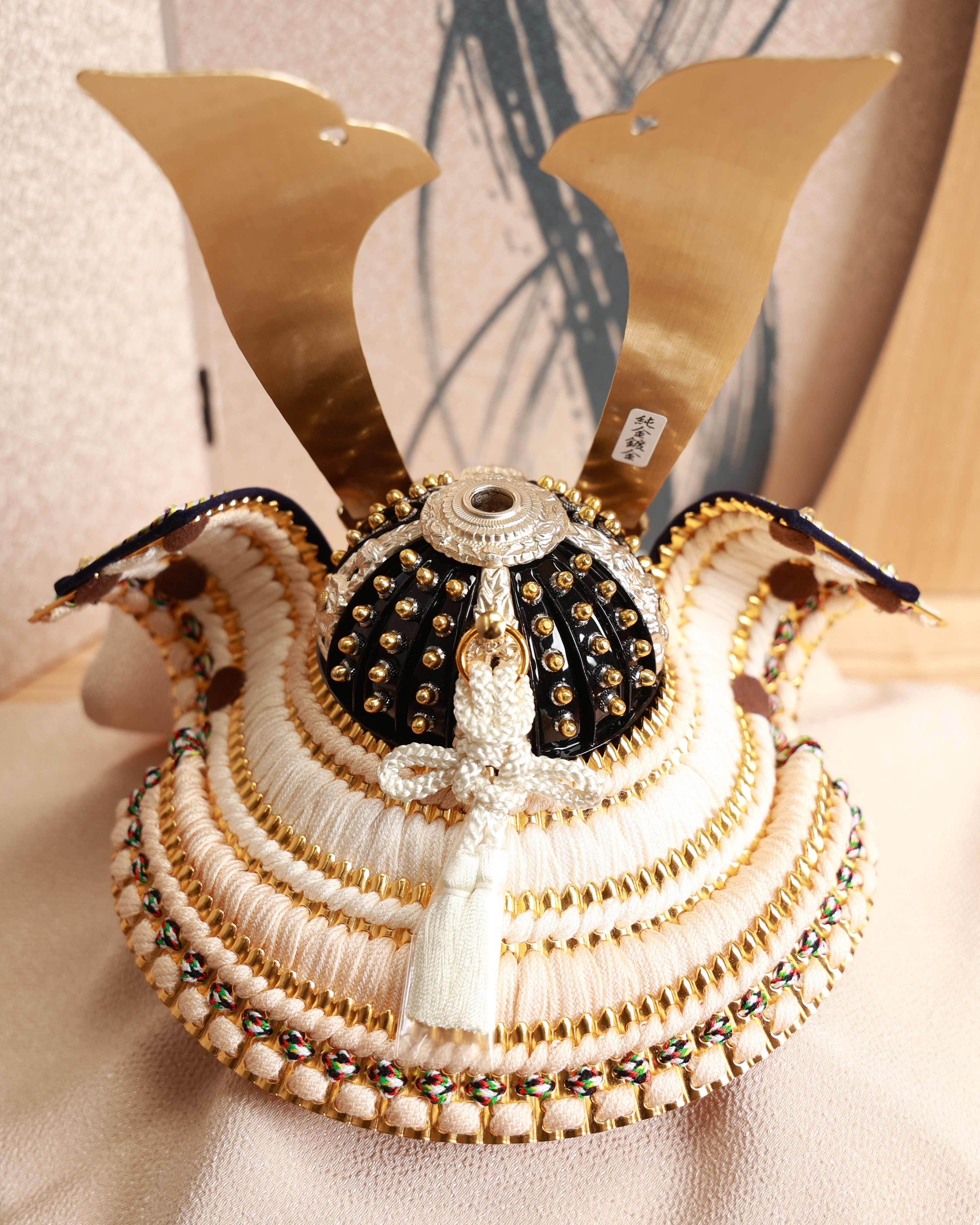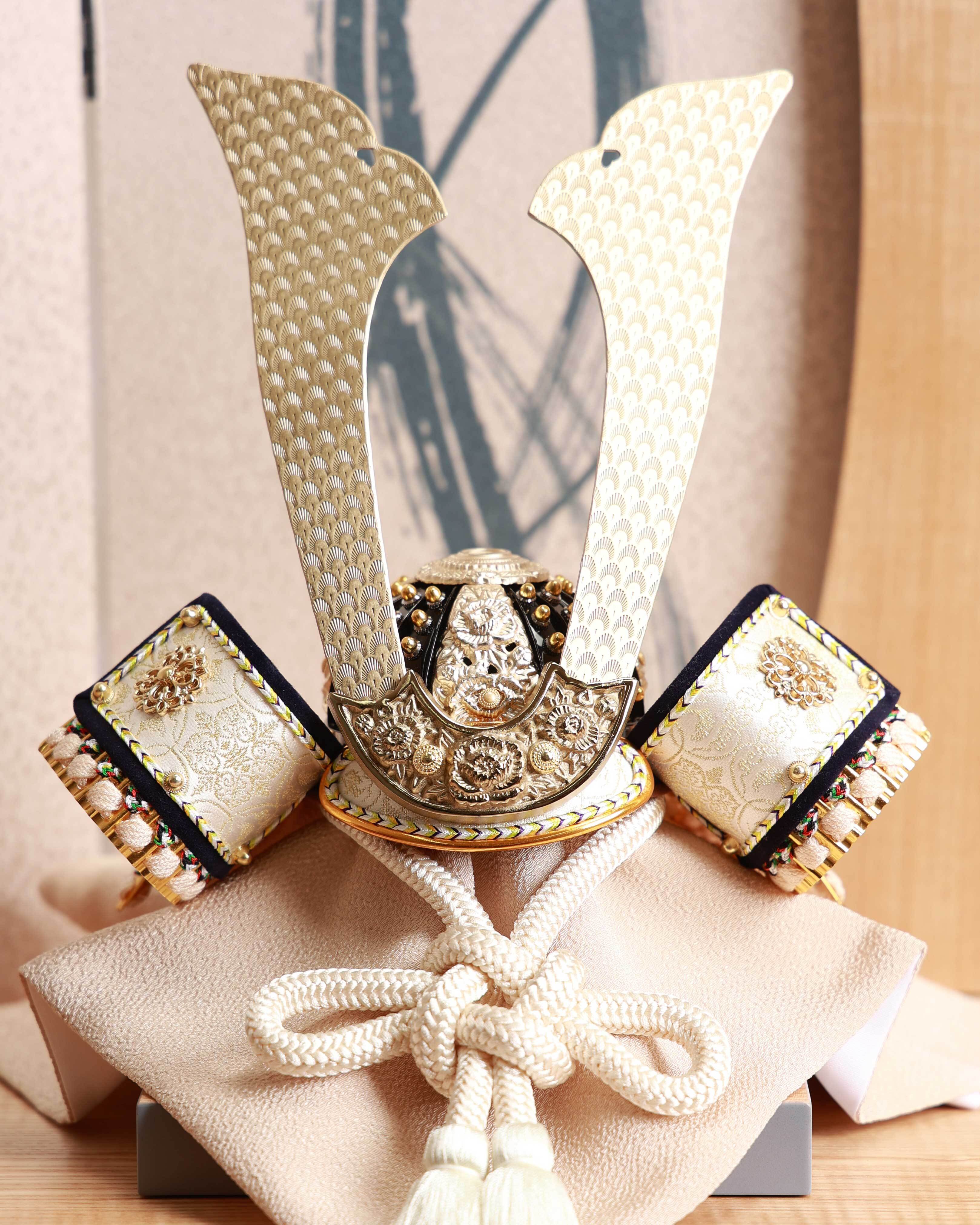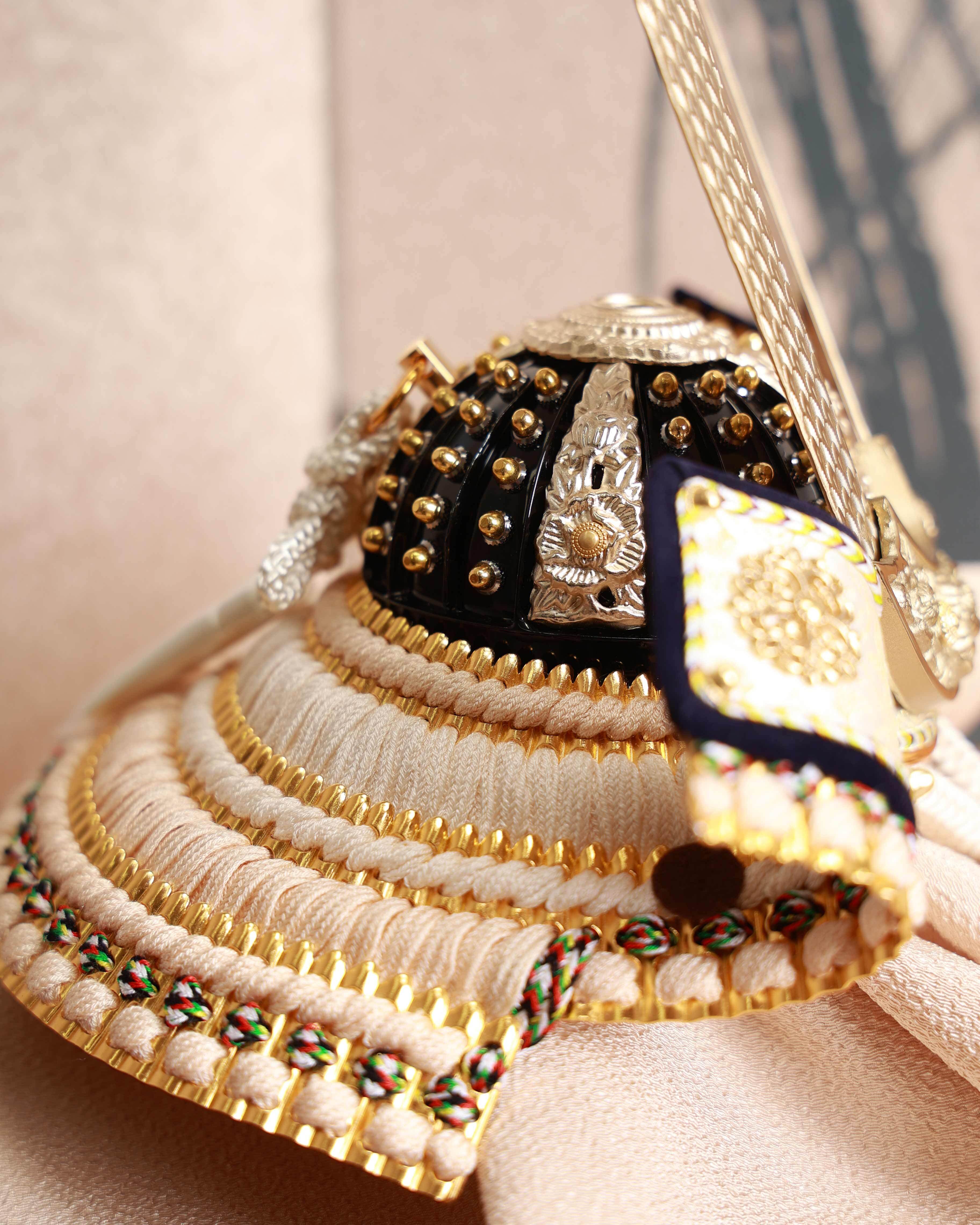 外務省の依頼を受け、日米首脳会談の贈答品を手掛けた、人形のはなふさの『亜麻色縅満天金星兜』。その格式高い逸品の小型シリーズです。