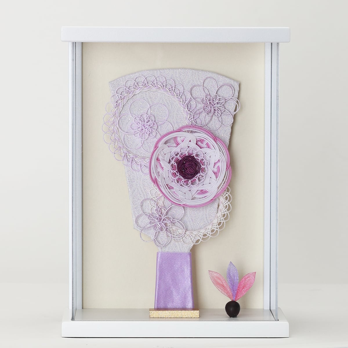 水引で作られたフラワーモチーフの羽子板