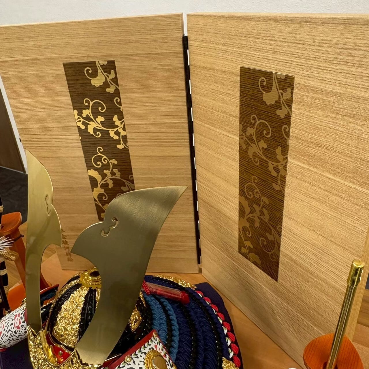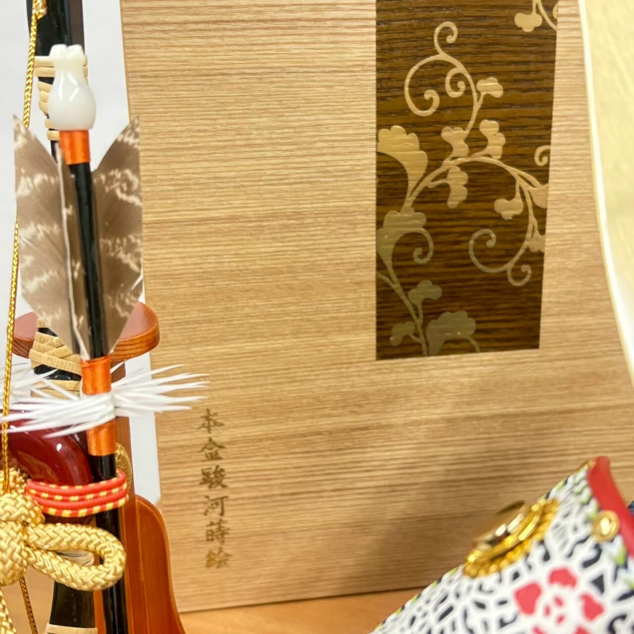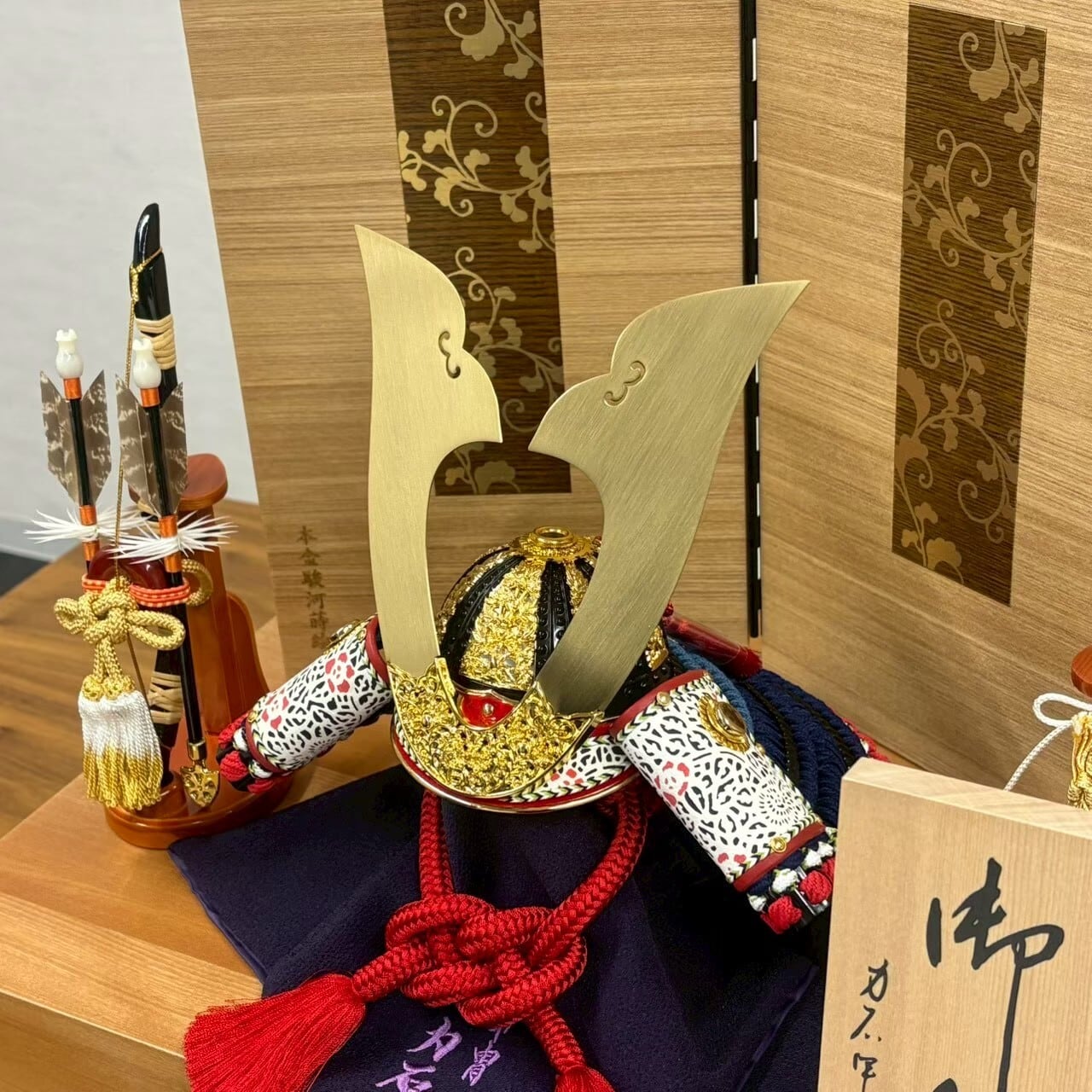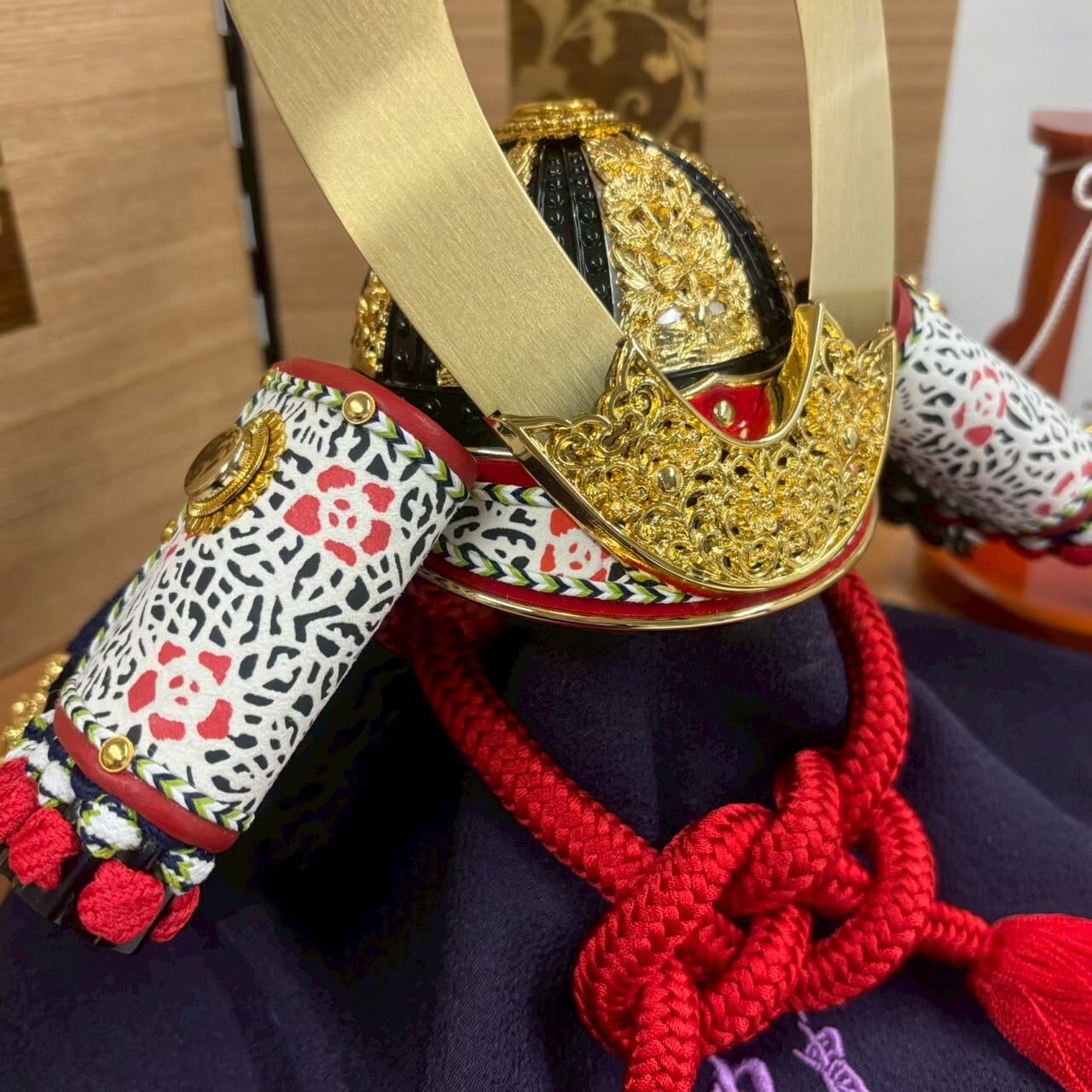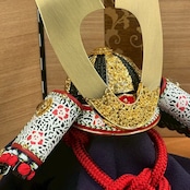 国宝や重要文化財として指定を受けている平安・鎌倉時代の甲冑は、全ての色彩が鮮やかで美しく、当時の武将は戦闘用ではなく祝い事や政(まつりごと)などの晴れ着として着用しました。また、自らの志が願いかなった時、感謝の意を込め、神社に奉納されたといいます。国宝甲冑に込められた思いや美しさを再現した力石甲人作 鎧兜はお子様の健やかな成長を願って制作されています。