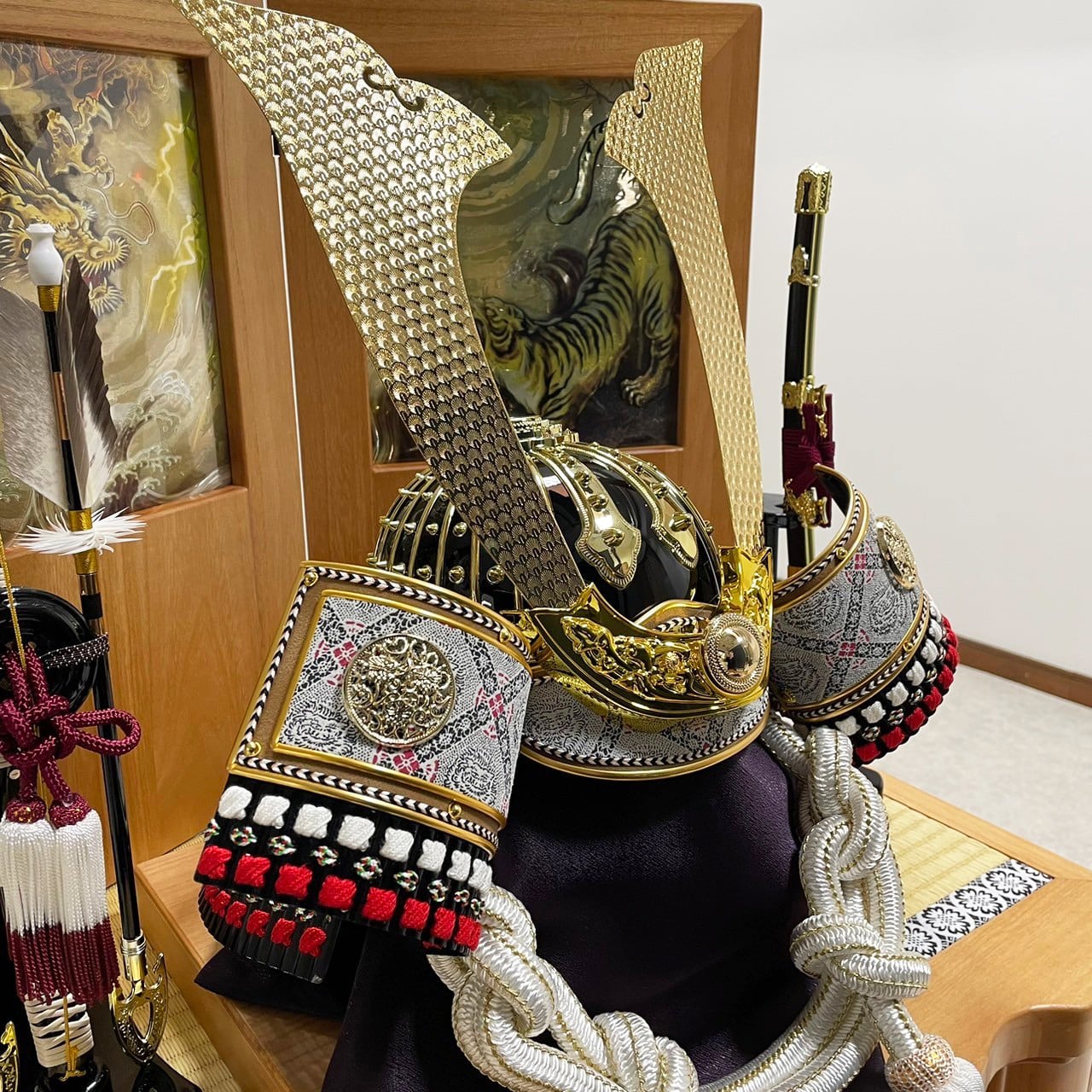 屏風に描かれている龍虎には、魔除けや強さ、幸運、健やかな成長、家内安全などを願う意味が込められています。